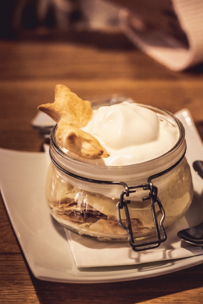 Po slastnem kosilu je sledil še poobedek – sladica. V Ribci vse jedi pripravljajo sami, vključno s sladicami. Izbrala sva kremšnito v kozarčku. Všeč mi je bila izvirnost njene izdelave, saj ni šlo za klasično kremšnito, obenem pa je zadovoljila željo po okusni sladici.